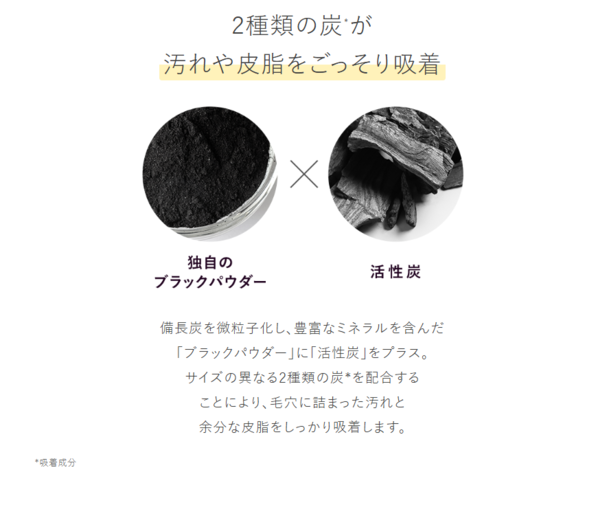 メイクはもちろん、毛穴の黒ずみ*1や皮脂、ザラつきまでもオフするクレンジングバーム。サイズの異なる2種類の炭*2を配合し、頑固な毛穴づまりをごっそり除去。