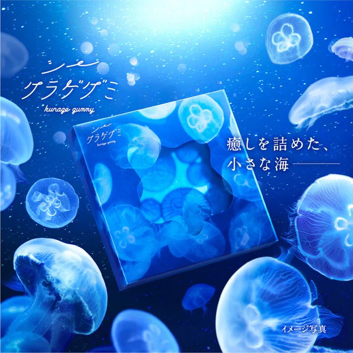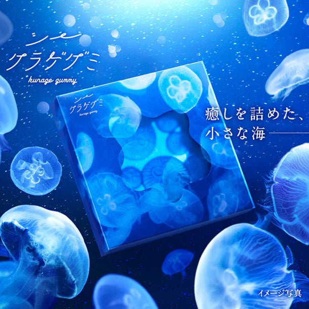 素敵な魅力いっぱいのクラゲをグミで表現し、海のようなパッケージに閉じ込めました。