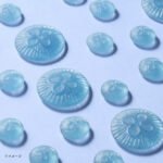大クラゲグミとチビクラゲグミの2種類で大小サイズを表現しました。商品を光にそのままかざすと、まるで海の中を漂っているようなクラゲグミをお楽しみいただけます。更に、中箱を取り出して光に透かしてみるとより綺麗なクラゲグミを見ることができます。