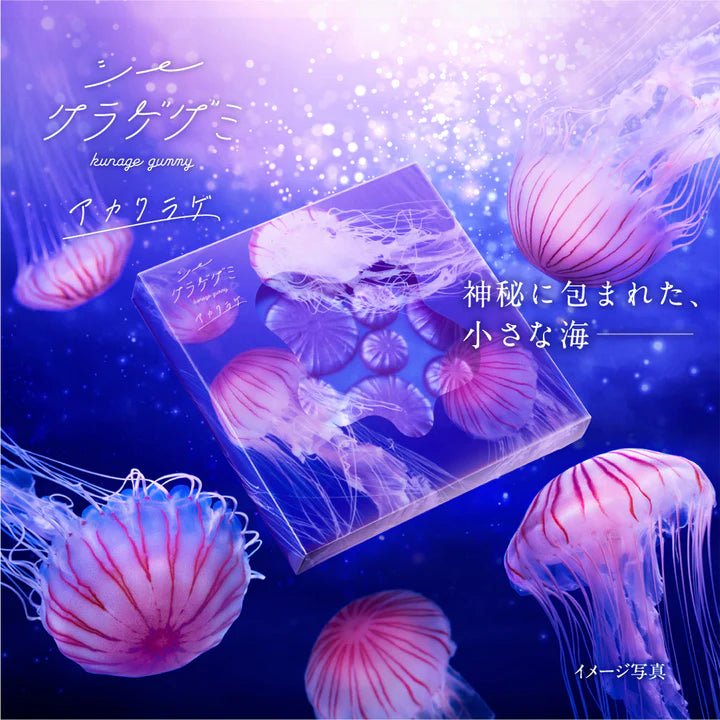 大クラゲとチビクラゲ、2種類のアカクラゲの傘を表現した、縞模様柄のグミ。