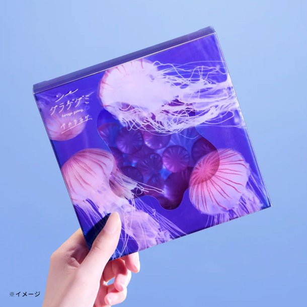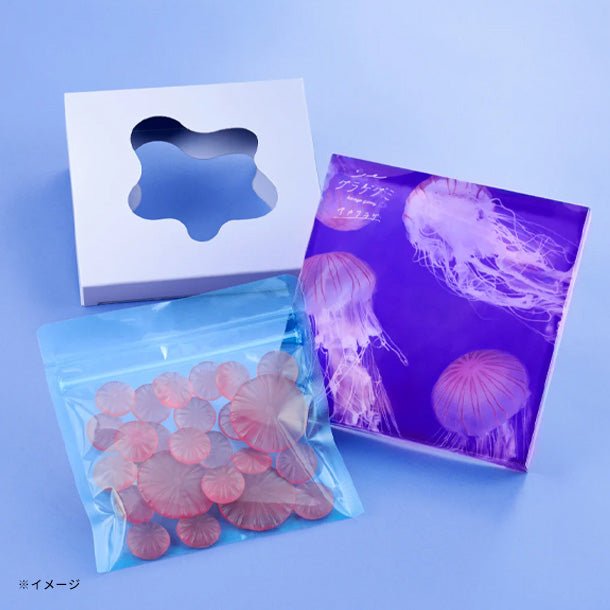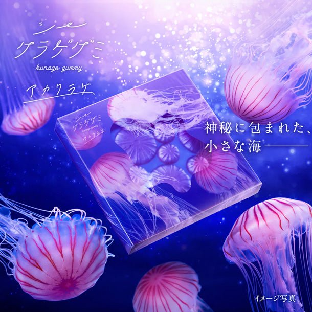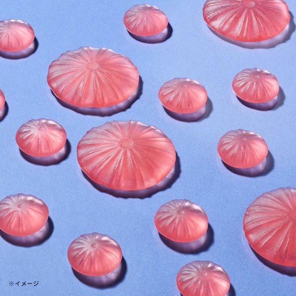 大クラゲとチビクラゲ、2種類のアカクラゲの傘を表現した、縞模様柄のグミ。