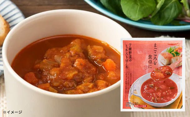 “「まごころを食卓に膳 7種野菜のミネストローネ」160g” の口コミを投稿します コメントをキャンセル
