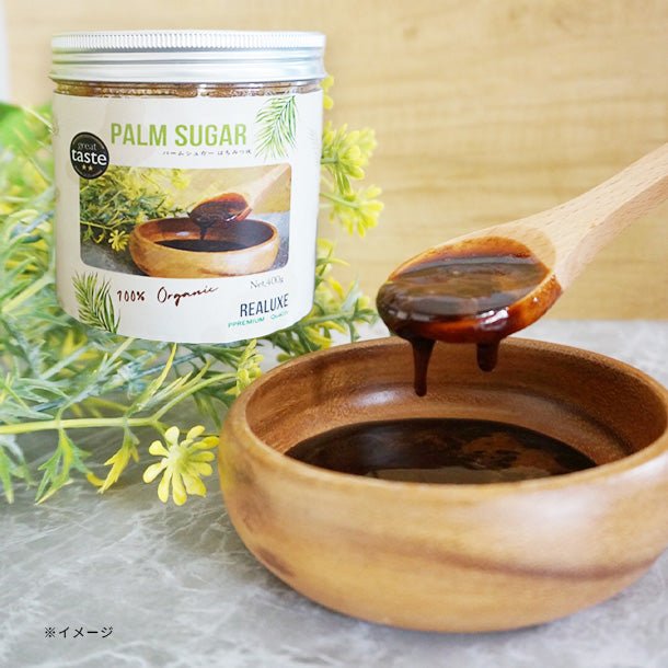 低GI値の体に優しい砂糖(はちみつ状) 。白糖に比べまろやかで後味が優しいのが特長で、黒糖のような風味と色をしています。 りんごと同量のポリフェノールが含まれています。