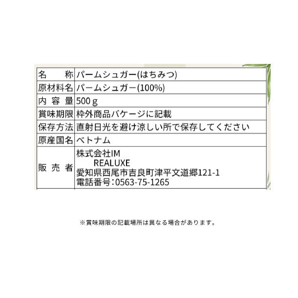 「パ-ムシュガー はちみつ」500g