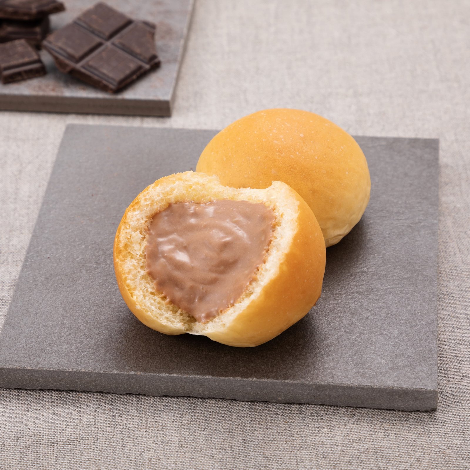 くちどけの良いチョコレートを贅沢に使い、クリームとあわせました。甘さ控えめのチョコクリームに仕上げ、小さいお子様からご年配の方まで、幅広くお楽しみいただけるミニくりーむパンです。