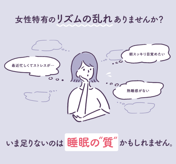 睡眠の質や、仕事や家事による一時的な疲労感やストレスに悩む方に寄り添う、ルナリズムシリーズから誕生した睡眠サポートサプリです。
