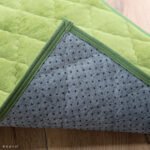 表地はあったかサンゴマイヤー素材、中身にポリエステルわたとアルミシートが入り、裏地にはすべりにくい加工を施した不織布を使用しているので、底冷えしにくくふっくらとした仕上がりになっています。