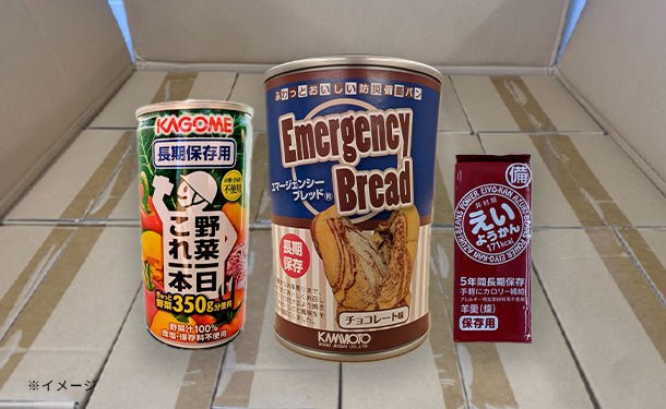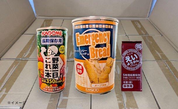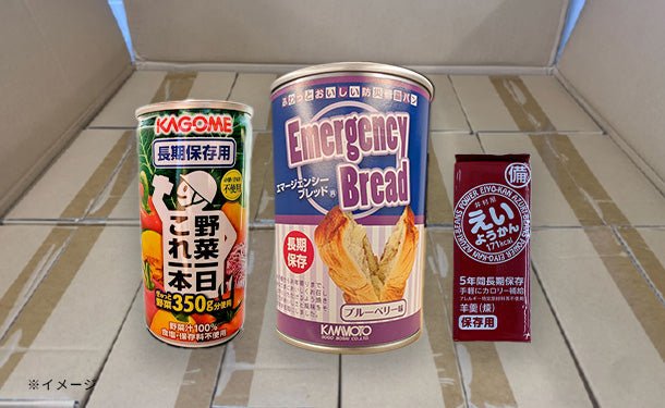 災害時でも食べられる、調理不要な商品のセットです。