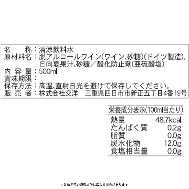 白ワインからアルコール分を除去した脱アルコールワインと、九州産日向夏のストレート果汁を35%使用しています。お酒の苦手な方や、お酒を控えたい方におススメです!