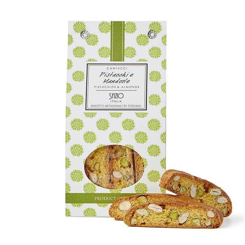 ピスタチオとアーモンドの香り高く、カリカリとした食感がおすすめ。本場イタリアでは、エスプレッソや赤ワインに浸してたべるのも主流です。濃い目にいれたイタリアンコーヒーとお召し上がりください。ティータイムに、食後に、おすすめです。