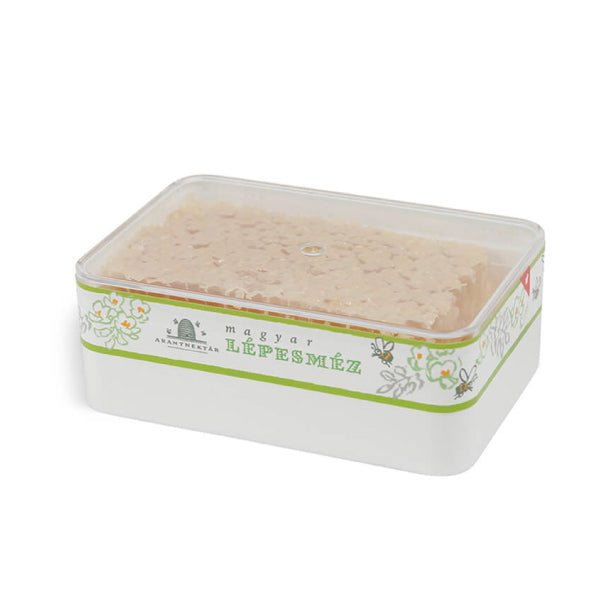 新鮮な蜂蜜がたっぷり詰まった、貴重な巣はちみつ板状の蜂の巣を巣箱から切り出してそのまま箱づめしました。蜜源はアカシアがベースの上品な味わいです。