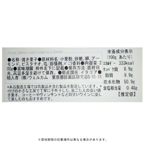 ピスタチオとアーモンドの香り高く、カリカリとした食感がおすすめ。本場イタリアでは、エスプレッソや赤ワインに浸してたべるのも主流です。濃い目にいれたイタリアンコーヒーとお召し上がりください。ティータイムに、食後に、おすすめです。