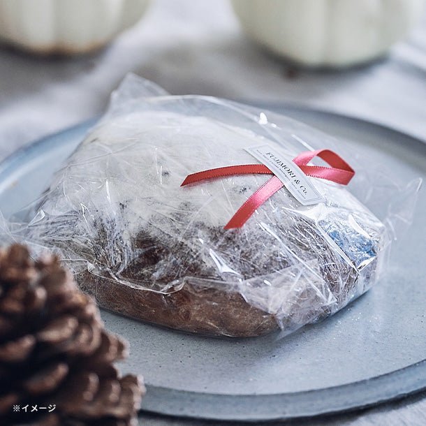 FUJIMORIのシュトーレンは、しっとりとなめらかな口どけが印象的なフランス・アルザス風。 時間をかけてじっくりと煮込んだ風味豊かなオレンジピール、レーズン、チェリー、パイナップル、レモンピールなどをしっとりとコク深い生地に練りこみ、たっぷりのバターにくぐらせ、シナモンシュガーとプードルデコール(粉糖)を纏わせて。 もちろんマジパンも忘れずに。 そのままでももちろん、冷やしてお召し上がりいただいても、口の中でジュワッとバターが溶け出す瞬間をお楽しみいただけます。 それはまさに至福の瞬間。 少しずつ切り分けながら、日毎に熟成される豊かな味わいをお楽しみください。