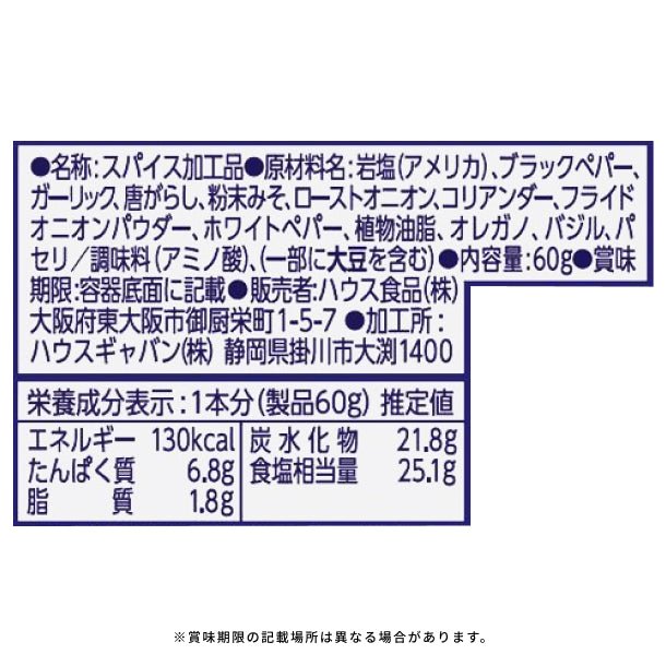 ブラックペパー、ガーリック、唐辛子、コリアンダー、ホワイトペパー、オレガノ、バジル、パセリ