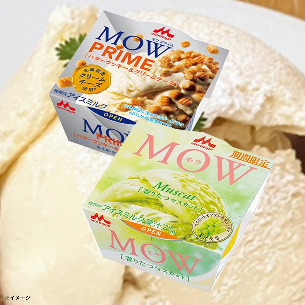 森永乳業「MOW PRIME バタークッキー&クリームチーズ・MOW香り立つマスカット」各18個