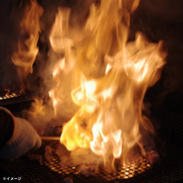 高温の炭(約1000℃)を使用する大型七輪で焼き上げます。この高温で焼き上げることで、鶏肉の旨味を閉じ込め、炭の香ばしい風味を纏わせ、宮崎名物「鶏の炭火焼き」ならではの味わいを実現しています。