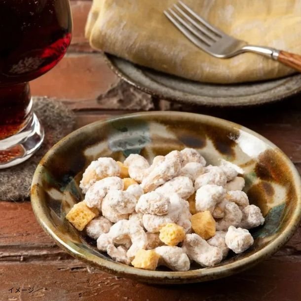 ラム酒粉末酒を使用。カシューナッツで、ラムレーズンの味を再現しました。口に入れた瞬間から華やかなラムレーズンの香りを感じ、カシューナッツ自体のナッツの甘さとバランスよくまとまります。チーズクリームを浸み込ませたチーズクルトンもミックスし、箸休めとして、白ワイン、洋酒(ウイスキー・ブランデー)とよく合います。