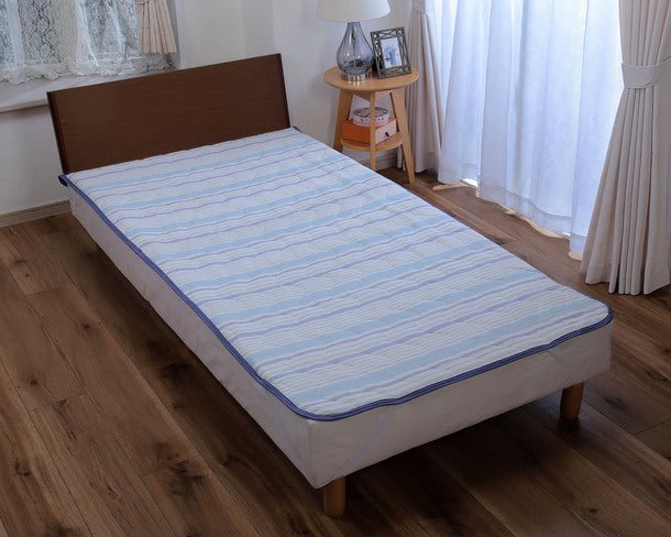 「ボーダー柄 しじら織り敷きパッド ブルー」