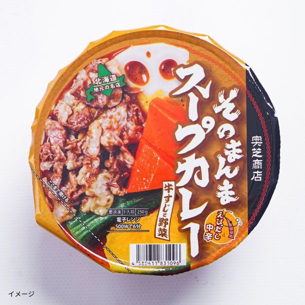 電子レンジでチンして「そのまんま」お召し上がりいただけます。奥芝商店の元祖海老だしスープカレーがお家で簡単にお召し上がりいただけるようになりました!具材も牛すじや野菜も入っているので何も手を加えなくても自宅で奥芝商店の味がお楽しみいただけます!家族みんなでお召し上がりいただけるように中辛でお作りしました!お家で気軽に奥芝商店のスープカレーをお楽しみください。