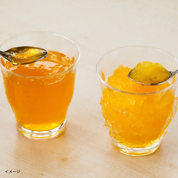 冷やすとぷるぷる食感のゼリーに、凍らせるとシャリシャリ食感のシャーベットとしてお好みの食感を楽しめます。 ナトリウム40mg以上配合し、熱中症対策にもぴったりです。 温州みかん果汁を10%未満配合し、しっかりとした果実感を感じられる味わいとなっています。