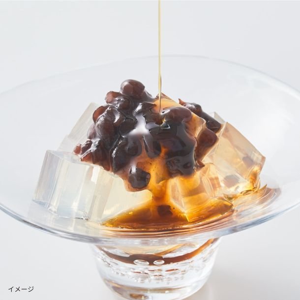 天草のシャキッとした食感の寒天とていねいに炊き上げた北海道産の大納言小豆に、特製の沖縄波照間産の黒糖を使ったオリジナルの黒みつをたっぷりかけてお召し上がりください。