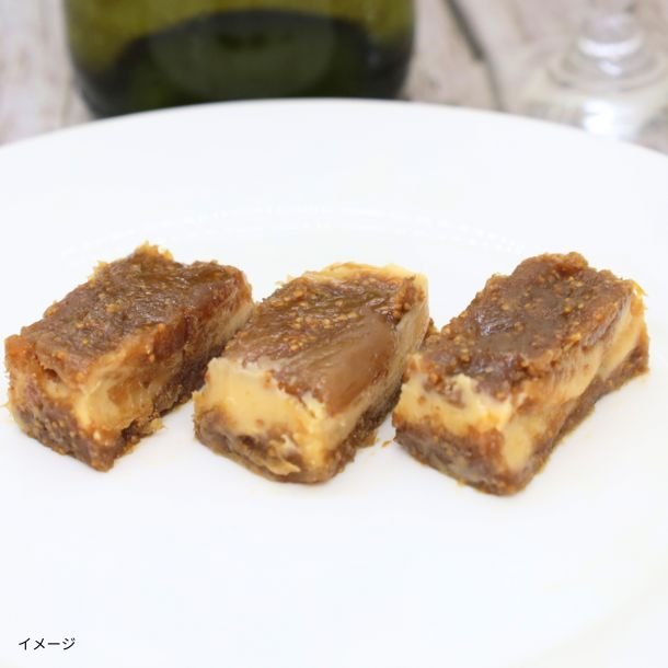 酒粕の「もったいない」から生まれた一品です。日本酒製造で大量に発生し、有効活用が難しかった酒粕を、なめらかなクリームチーズといちじくでサンドしました。