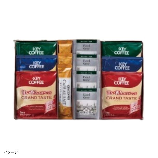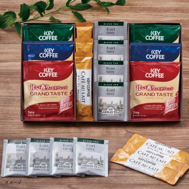 甘い香りのモカブレンド、コク深いリッチブレンド、濃厚なビターブレンド、贅沢仕立てのカフェラテ、アールグレイ紅茶のセットです。