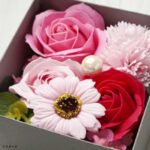 見つめるたびに嬉しくなる、ギュッと豪華に詰め込みました。アーティフィシャルフラワーとフラワーソープを1箱に詰めこんだ華やかなボックスフラワーは箱を開けるとフラワーソープの爽やかな香りがフワリと香ります。箱のまますぐ飾れます。