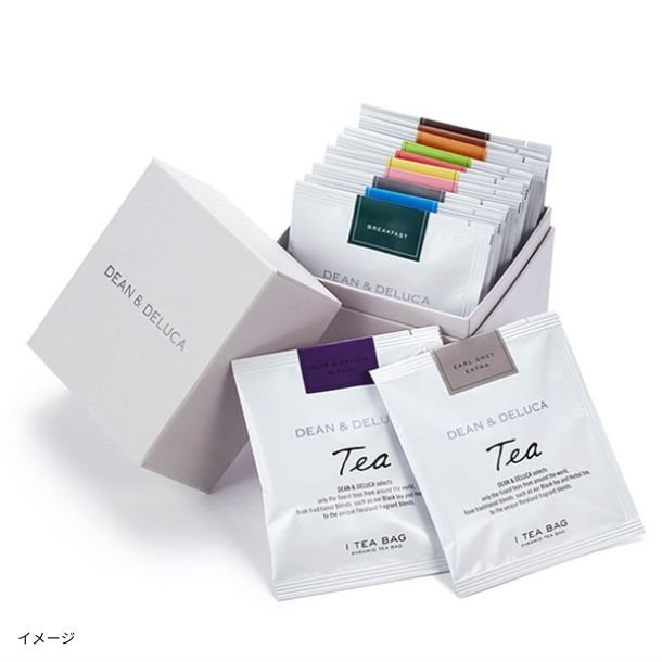 ジンジャー&レモンマートル、キャラメル、スパイスチャイ、モロッカンミント、エルダーフラワー&カモミール、アップル、 ダージリン、ルイボス&ローズ、デカフェアールグレイ、ブレックファスト、アールグレイエクストラ、ディーン&デルーカブレンド
