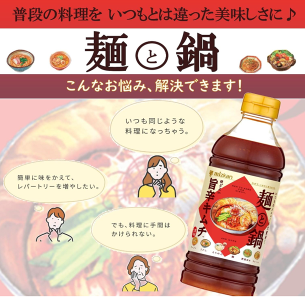 Mizkan「麺と鍋。ほどよい旨辛キムチ」500ml