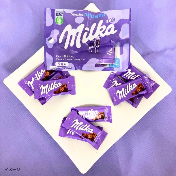 シンボルである牛の「Lila」(リラ ドイツ語で紫を意味する)とともに広く愛されるミルカのチョコレートは、1901年にスイスのスシャール社で誕生しました。その後すぐにオーストリアなど周辺諸国への輸出が始まり、生産拠点はドイツに移り、1960年代にはドイツNo. 1のチョコレートとなりました。「ミルク」と「カカオ」を組み合わせて「ミルカ」と名付けられたチョコレートは、世界中で一時間に15万枚売れていると言われており、ドイツをはじめとした世界各国で長年親しまれています。1995年以降アルペンスキーのスポンサーにもなっています。