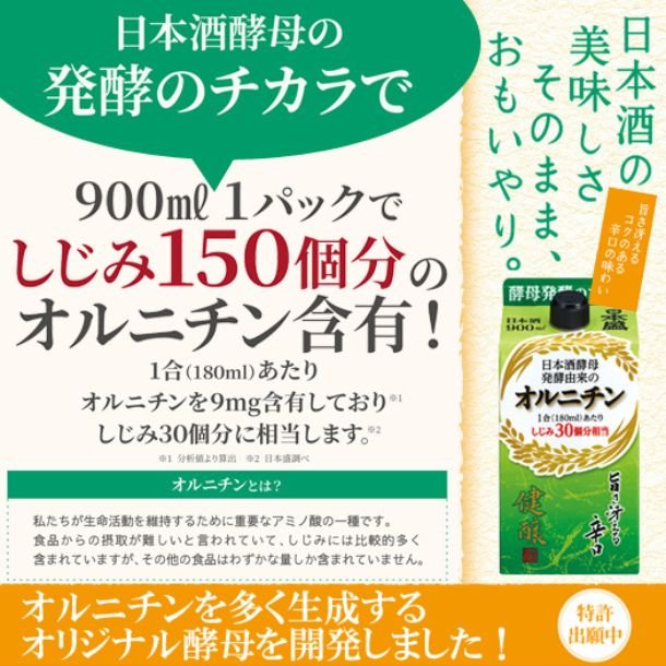アミノ酸の一種であるオルニチンが多く含まれ、旨さが冴える飲み飽きしないすっきりとした辛口酒。常温でも燗でも飲み方を選ばない日常酒に最適のお酒。