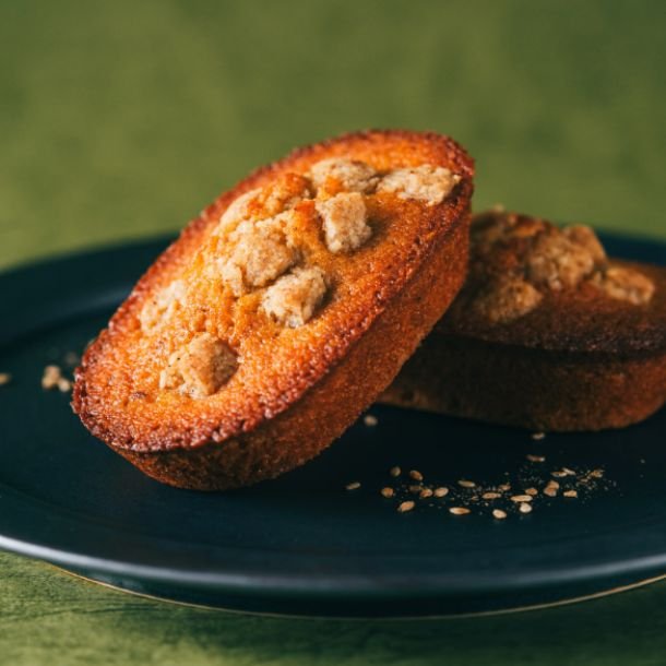 ごまおからを生地とクランブルにたっぷり練り込んだ、香ばしい香りが楽しめるフィナンシェ。