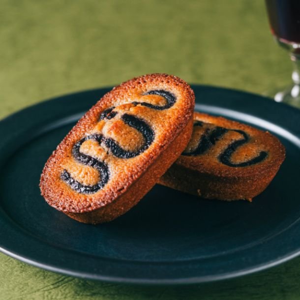 ワイン澱とセミドライいちじくでジャムを炊き、澱を混ぜ込んだ生地の上に絞り焼き上げた、ワインの風味がフルーティーに香るフィナンシェ。