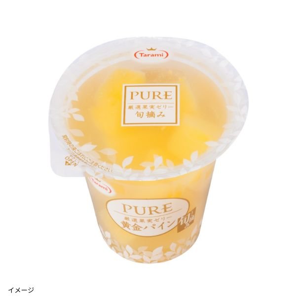クリアでみずみずしく、つるんぷるんとした口当たりのゼリーに、上質なフルーツの香り・味わい・食感をギュッと閉じ込めました。いつでも、フルーツの旬の美味しさが楽しめるフルーツゼリーです。旬の時期に収穫した黄金パイン果肉を使用し、黄金パインの香り・味わい・食感をシンプルに味わえるゼリーです。クリアでみずみずしく、自然な甘さのゼリーは、つるんぷるんとした口当たりが特徴で、黄金パインの豊潤な味わいを引き立てます。