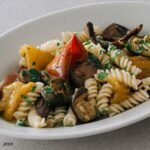 大きめにカットされた肉厚でジューシーなグリル野菜をつかったパスタ。レモンとハーブ入りのマリネ液で他に調味料を加えなくても味がきまります。
