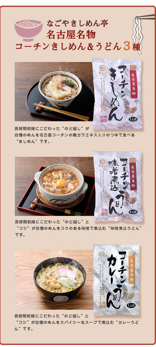 なごやきしめん亭「名古屋名物 コーチンきしめん&うどん」3種×各1箱
