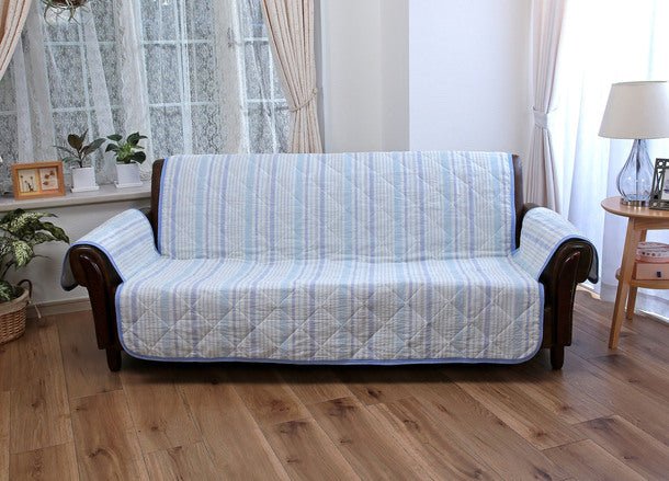 「しじら織りソファーカバー3人掛用 ブルー」
