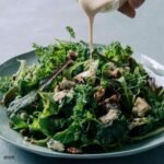 Tips ベビーリーフ、ケール、セルフィーユ、ピーカンナッツ、ブルーチーズにひと回しかけて、ごちそうサラダのできあがり。