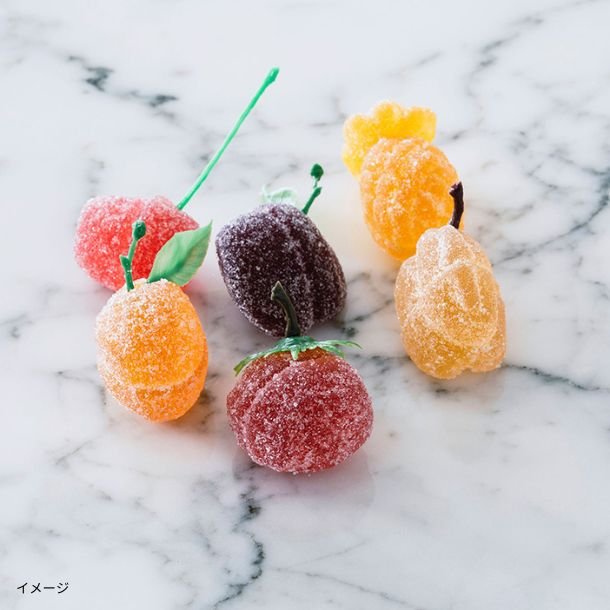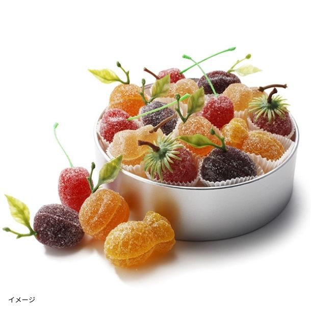 かわいらしいフルーツの形のゼリー。イタリア トリノから届いた贅沢なフルーツゼリーの詰め合わせ。フルーツ果汁を使用したジューシーなゼリーです。