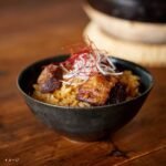 天然醸造のミツル醤油の濃口醤油を使用し、深い旨味と、さっぱりした脂の鹿児島黒豚と実山椒を合わせました。