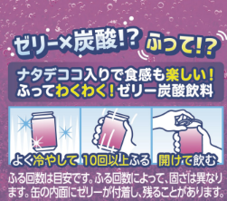 ゼリー×炭酸×ナタデココという独自の組み合わせと、振って飲める炭酸で、わくわく感を楽しめるゼリー炭酸飲料。