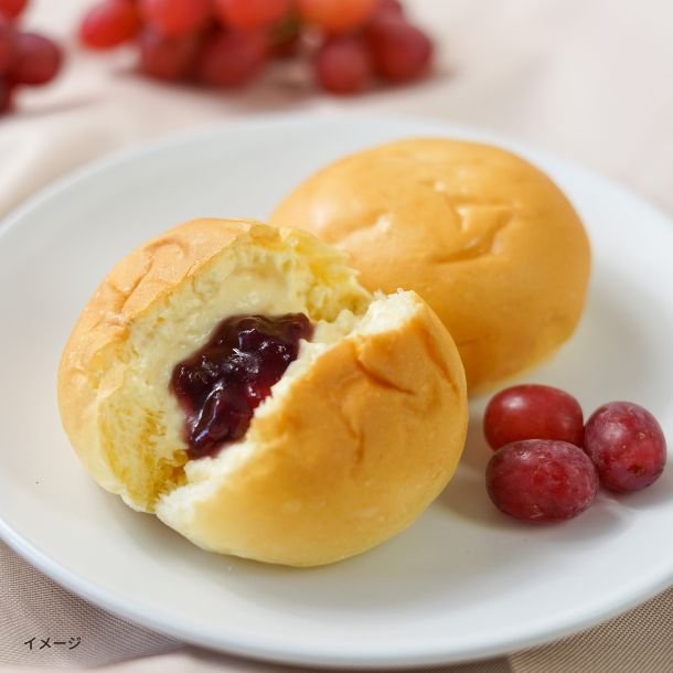 ジューシーで爽やかな甘さのぶどうの風味が口いっぱいに広がるくりーむパン