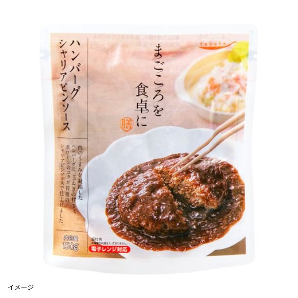 「まごころを食卓に膳」は、暮らしに寄り添い、食卓をあたたかく彩る、常温惣菜のお惣菜。まごころをこめてお届けします。肉のうまみを凝縮したハンバーグに、玉ねぎの甘さと赤ワインのコクが特徴のシャリアピンソースで仕上げました。レンジ対応パウチ商品です。