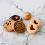 左から、バターとキャラメルのコクを塩味が引き立てる「ソルトキャラメルクッキー」、シナモンとジンジャーで風味豊かに焼き上げた「オートミールクランベリー」、アーモンドとホワイトチョコがアクセントの「ドロップホワイトチョコ」、アーモンド&マカダミアナッツの香ばしさとブラウンシュガーのコクが広がる「バタースコッチ」、バニラ生地に甘酸っぱいジャムを挟んだ「ハートジャムサンド」など、多彩な味わいや食感を生地に忍ばせました。