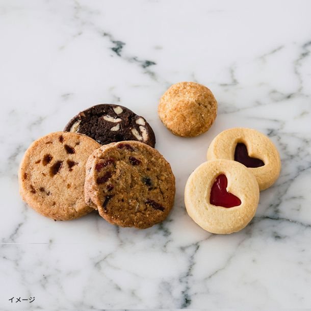 厳選した素材を使い、口どけよくシンプルに仕上げた「プレーンクッキー」、プレーン生地にココアパウダーを加えたほんのりビターな「ココアクッキー」、アーモンドパウダーとシナモンをプラスし、コクも風味も豊かに焼き上げた「シナモンシュガー」、プレーンクッキーにラズベリーとレモンのフロスティングでデコレーションした2色の「アイシングハート」。ひとつひとつのフレーバーをしっかりと感じられる、個性豊かな味わい。