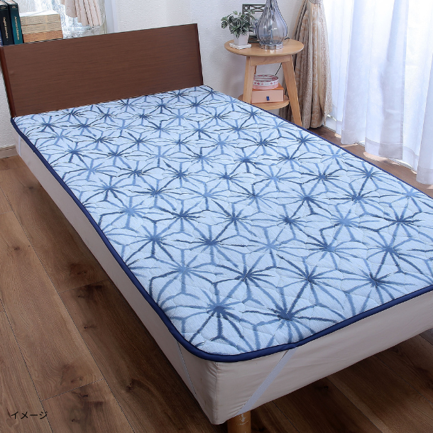 「高島ちぢみ敷きパッド 麻の葉柄」