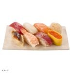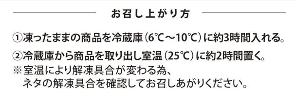 色合いや食感を損なわぬよう様々な工夫を組み合わせ、冷凍とは思えない再現性を実現しました。 シャリには、酒粕を使い熟成させた赤酢を使用した赤シャリを採用。 ネタには、めばちまぐろ、いか、サーモン、ほたての昆布締め炙り、煮あなご、海老、漬けまぐろ、京樽らしいきんしで巻いたいくらを使用しています。