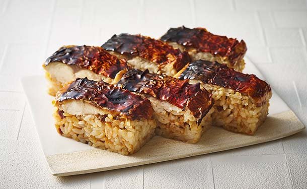 伝統的な上方鮨の技術で作った、うなぎの押し寿司。椎茸とかんぴょうの旨味を加えた優しい甘さがうなぎの旨味を引き立てます。 具材とシャリの考えられたバランスが美味しい押し寿司です。