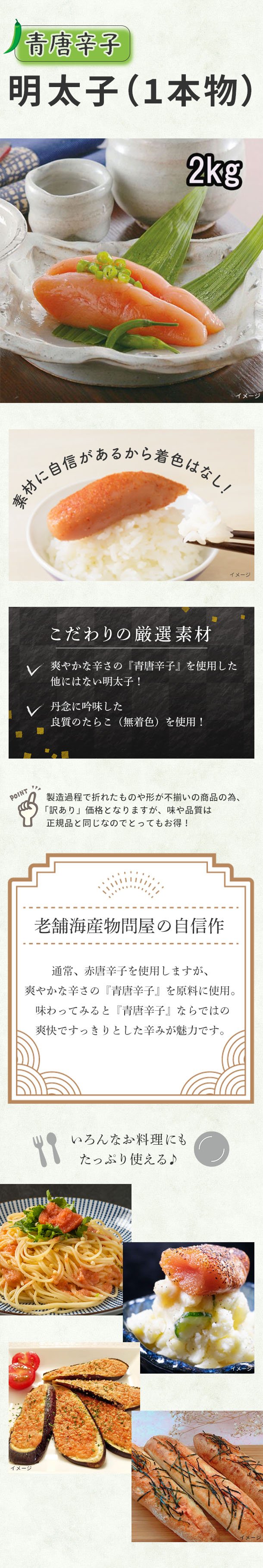 楢崎商店「訳あり青唐辛子明太子(1本物)」2kg